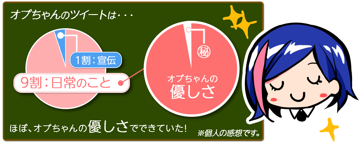 オブ:みなさんにOBGのことも私のこともたくさん知っていただきたいので、毎日楽しくつぶやかせていただいています!